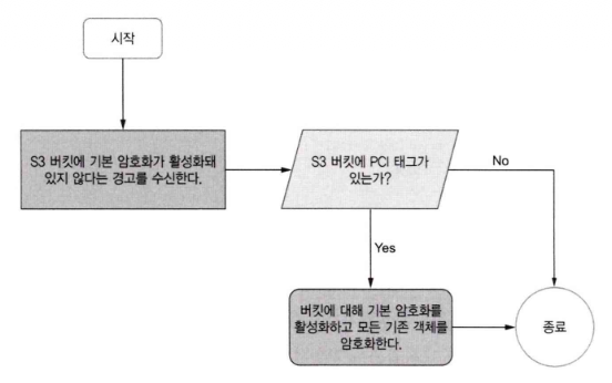 아래 코드는 경고를 수신하고, 태그를 확인한 뒤, 조건에 맞으면 기본 암호화를 활성화하고 기존 객체까지 암호화하는 전체 코드의 예시이다.