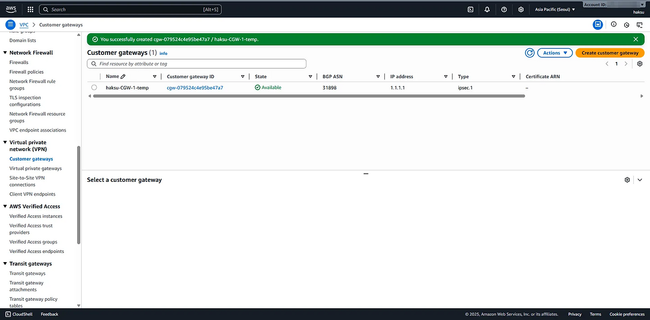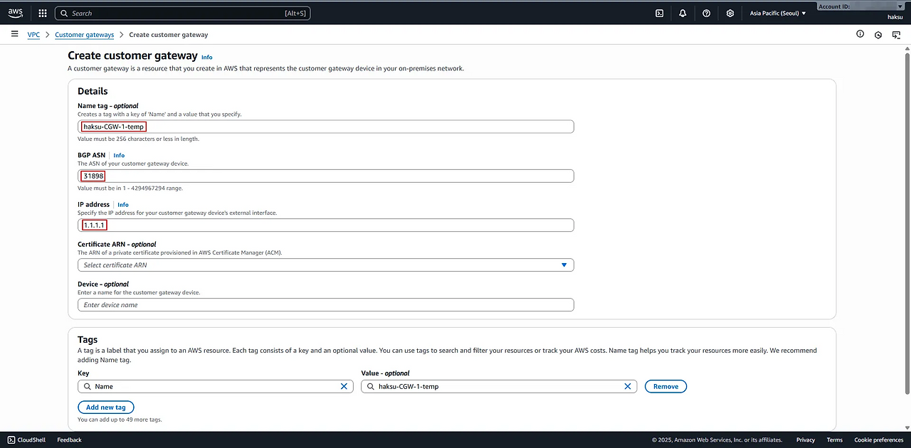 2.1. 임시 Customer Gateway
