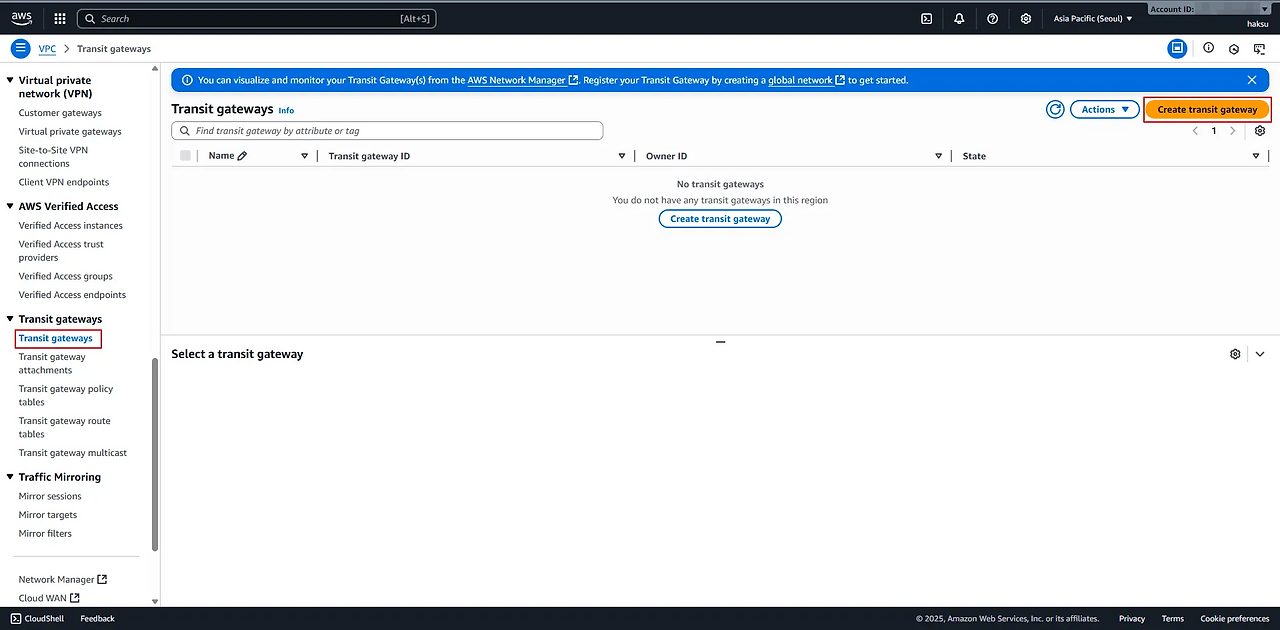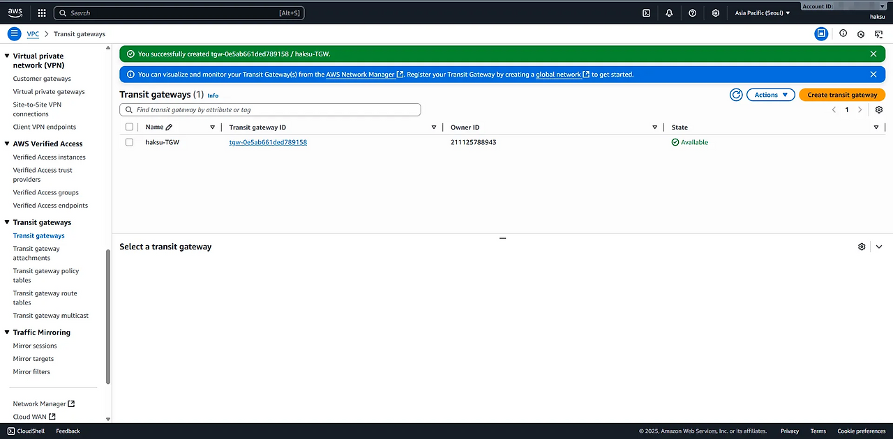 (https://docs.aws.amazon.com/vpc/latest/tgw/tgw-transit-gateways.html#create-tgw) - 생성 확인