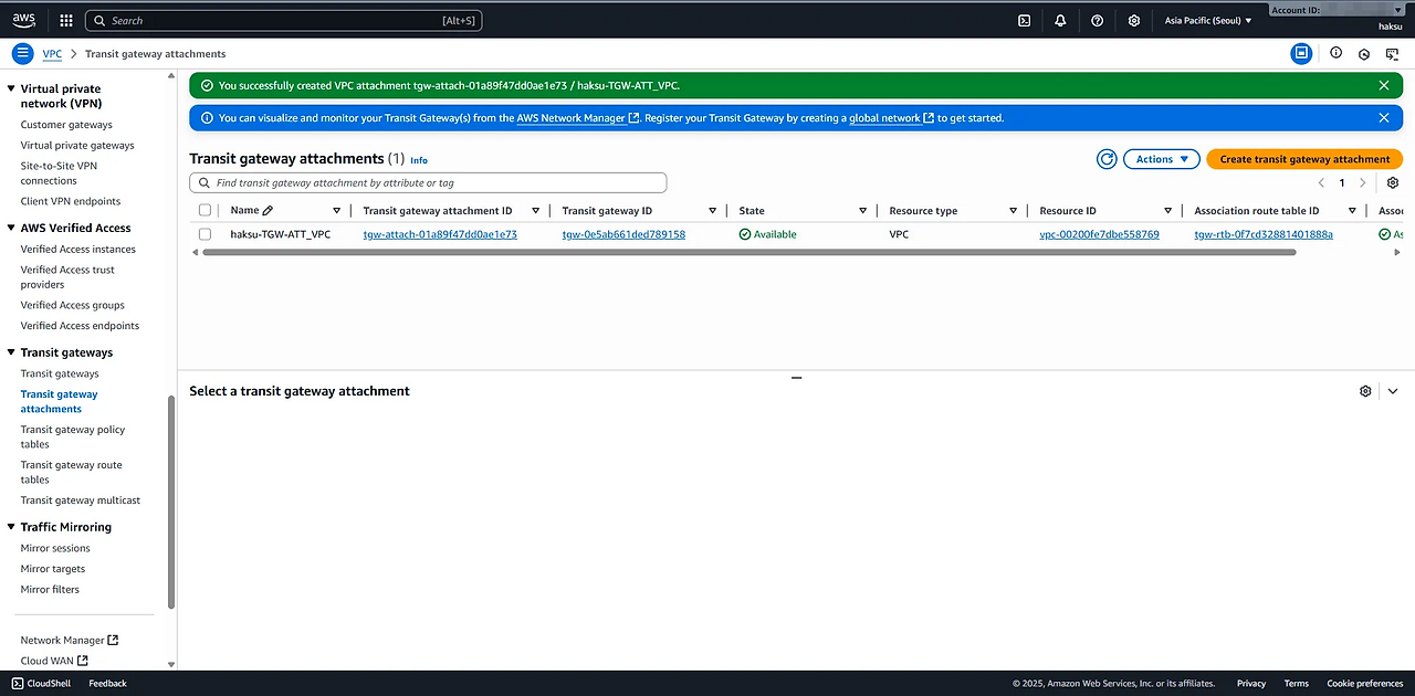 - Create transit gateway attachment
