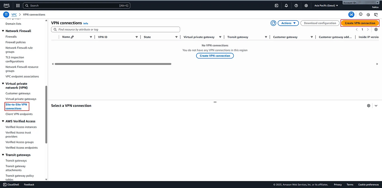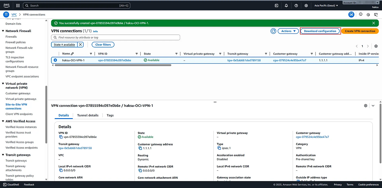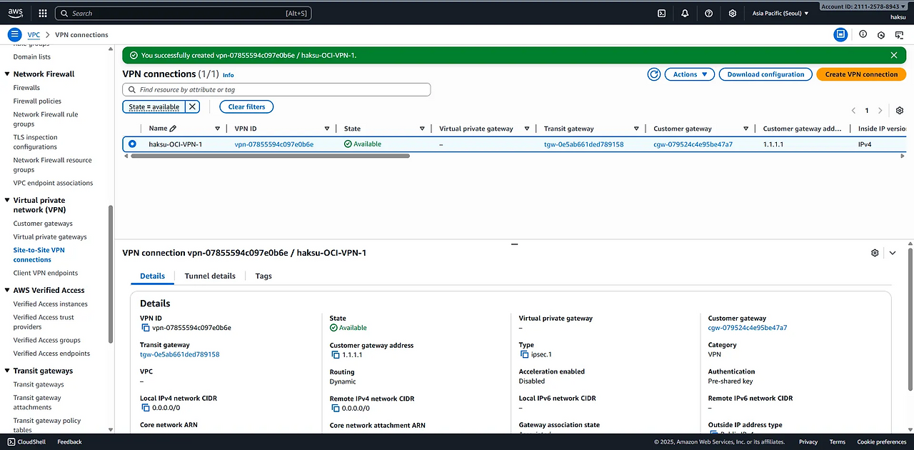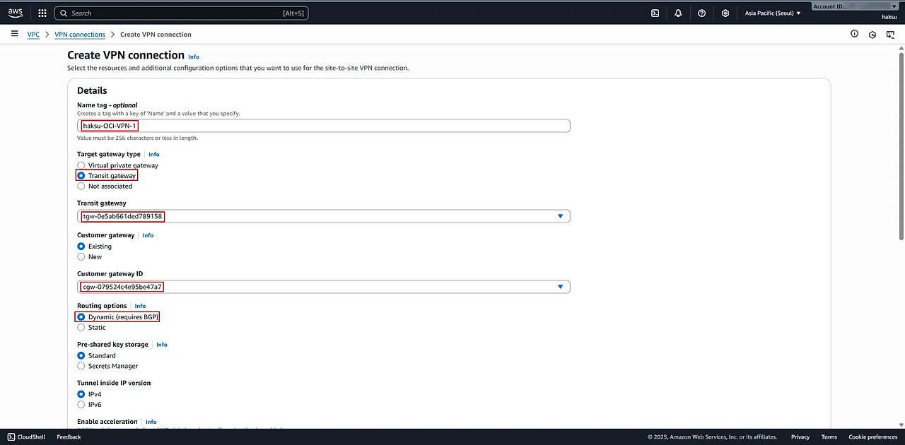 [Multi Cloud] AWS-OCI VPN tunnel 이중화 (BGP)_2.AWS-OCI VPN1 구성(AWS)