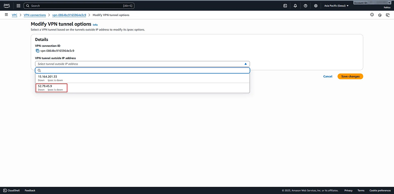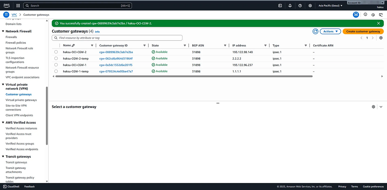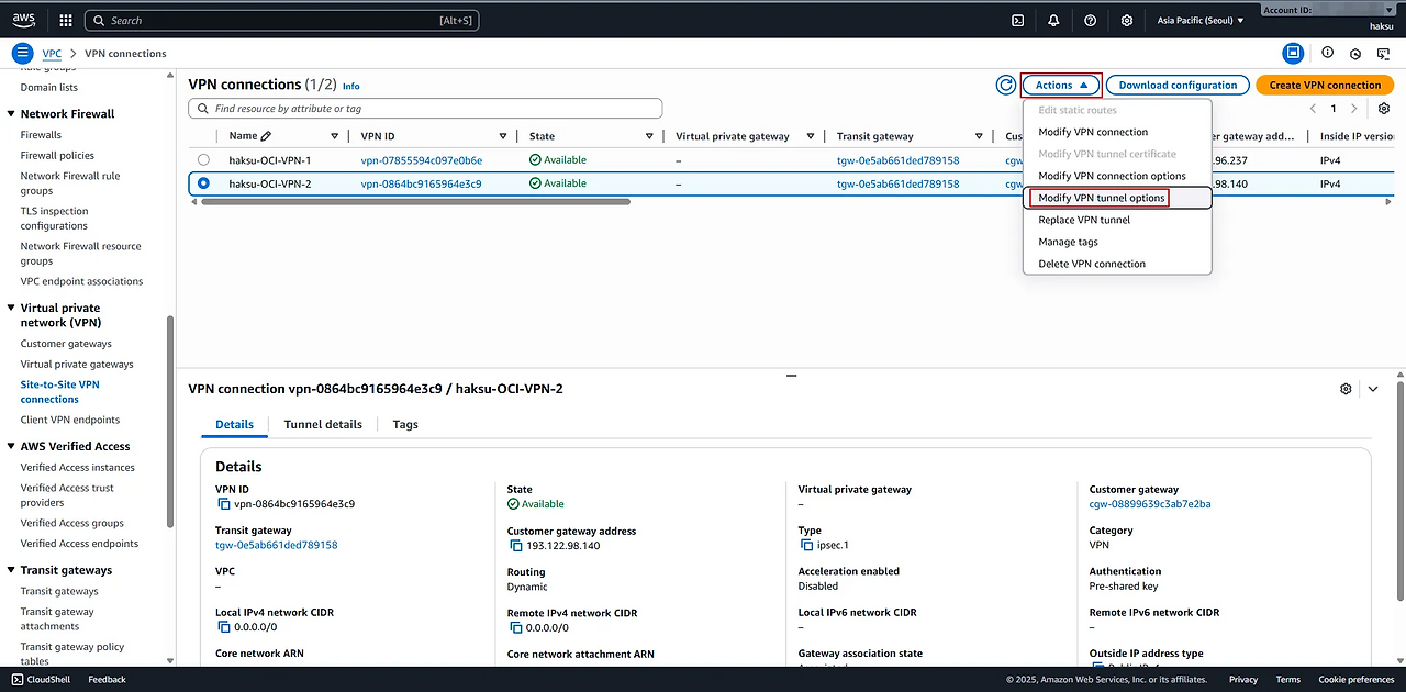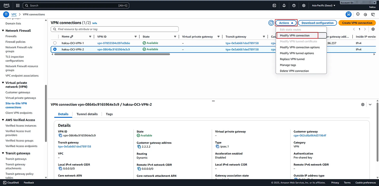 [Multi Cloud] AWS-OCI VPN tunnel 이중화 (BGP)_8.AWS-OCI VPN2 구성(AWS)