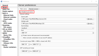 Enable local server 체크 확인, Remote server 탭에 아무것도 없는 것 확인