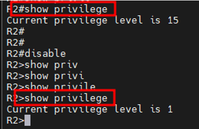 권한의 정도가 다름(15-MAX, 0-MIN) -> enable password 설정 필요