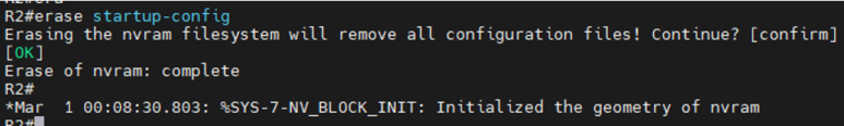 erase startup-config 명령어로 장비 초기화 메모리에는 페이지 단위로 저장, startup-config는 파일