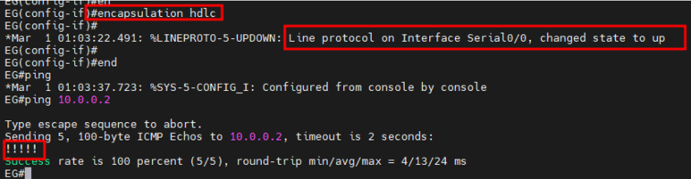 다시 통신되도록 encapsulation hdlc로 맞추고 통신해보기