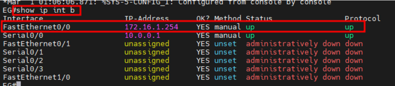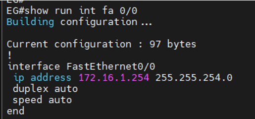 서브넷 마스크까지 확인하려면 show running-config 내용으로 확인 가능 (#show ip int b로는 서브넷마스크 확인 불가)