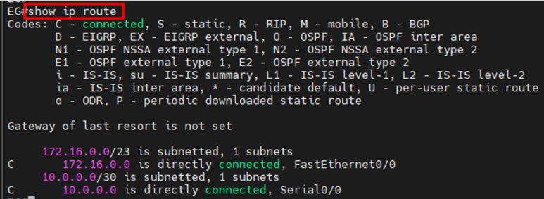 -> #show ip route 명령어로 라우팅 테이블 확인 가능