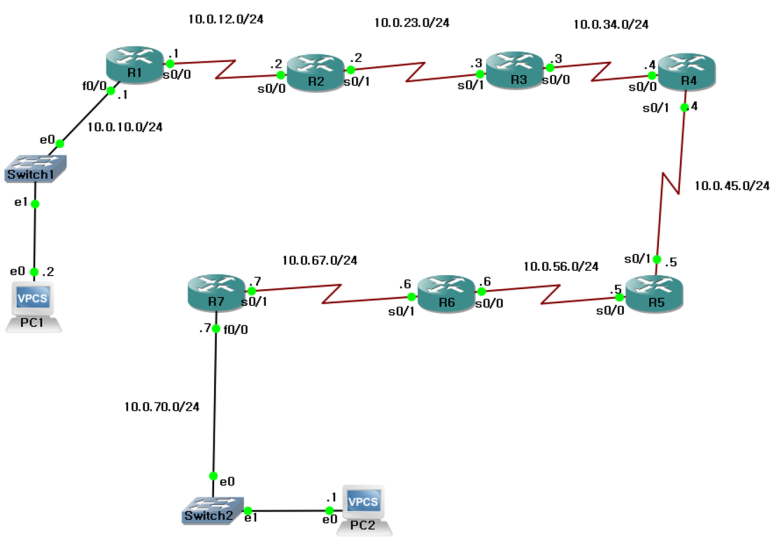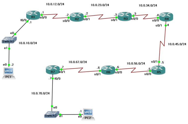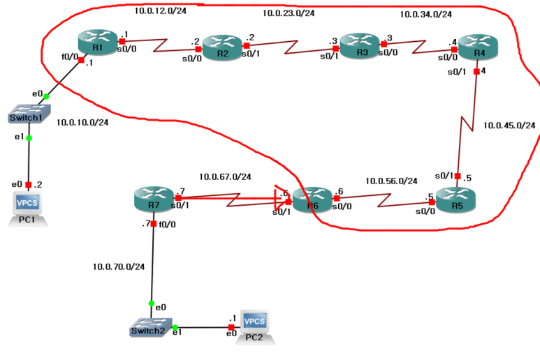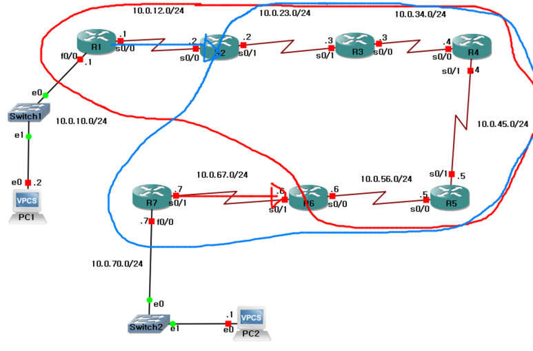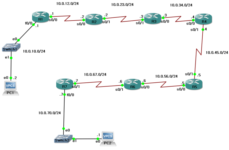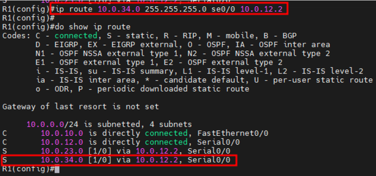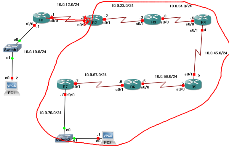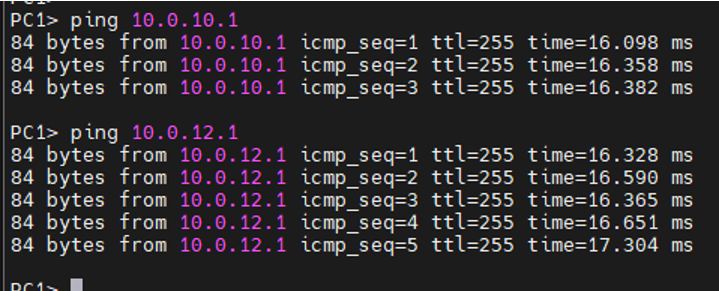 PC1(10.0.10.2/24) -> R2(10.0.12.2/24)