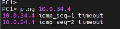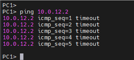 -> R2(10.0.12.2)로 갔다가 PC1의 대역 라우팅 정보가 없어 돌아오지 못함(timeout)