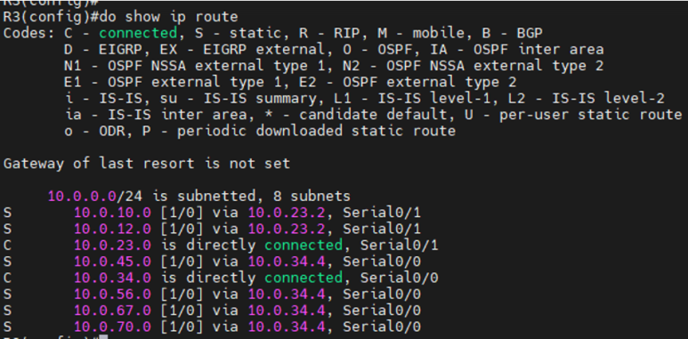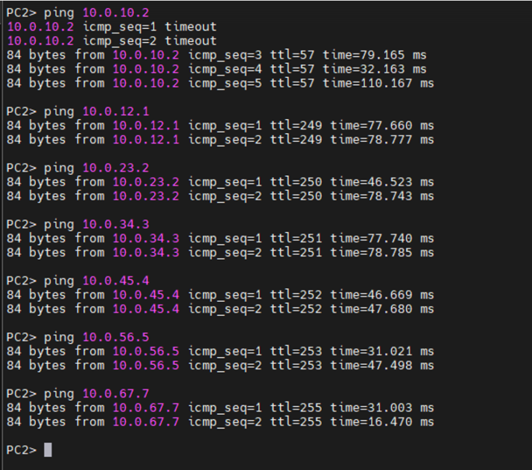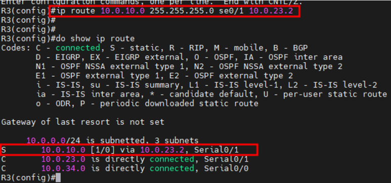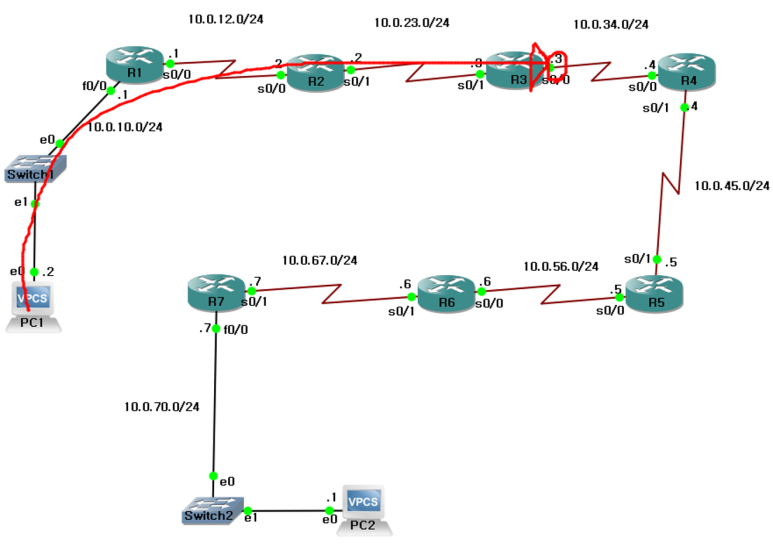 PC1(10.0.10.2/24) -> R3(10.0.23.3/24)