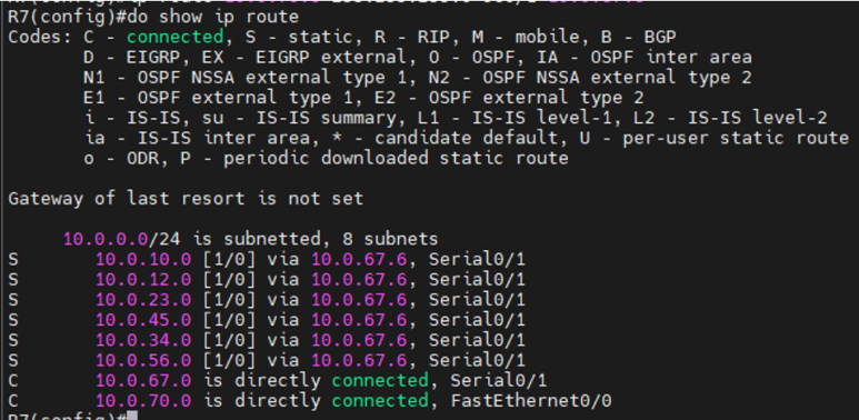 -- ex) #(config) ip route 0.0.0.0 0.0.0.0 [다음 홉의 ip]