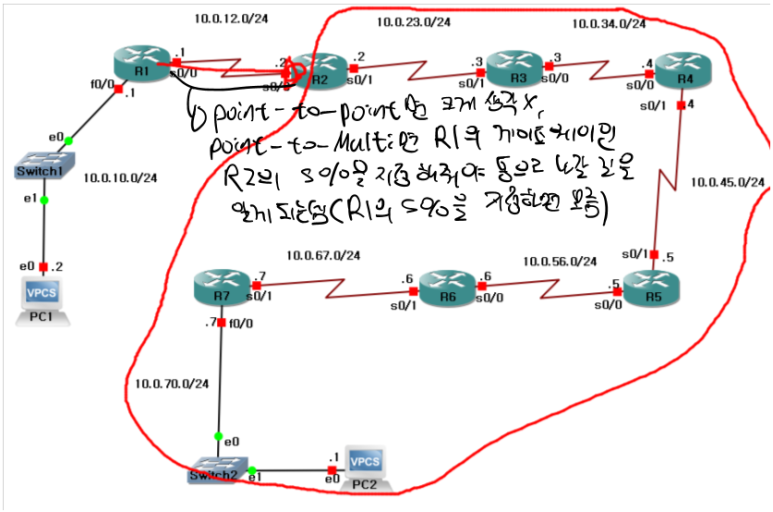 -> 내가 한 것처럼 R1의 인터페이스를 지정하면 R1과 R2가 Point-to-Point일 때는 상관없지만, Point-to-Multi면 다음 홉을 몰라서 어디로 나가야 통짜인지 모름