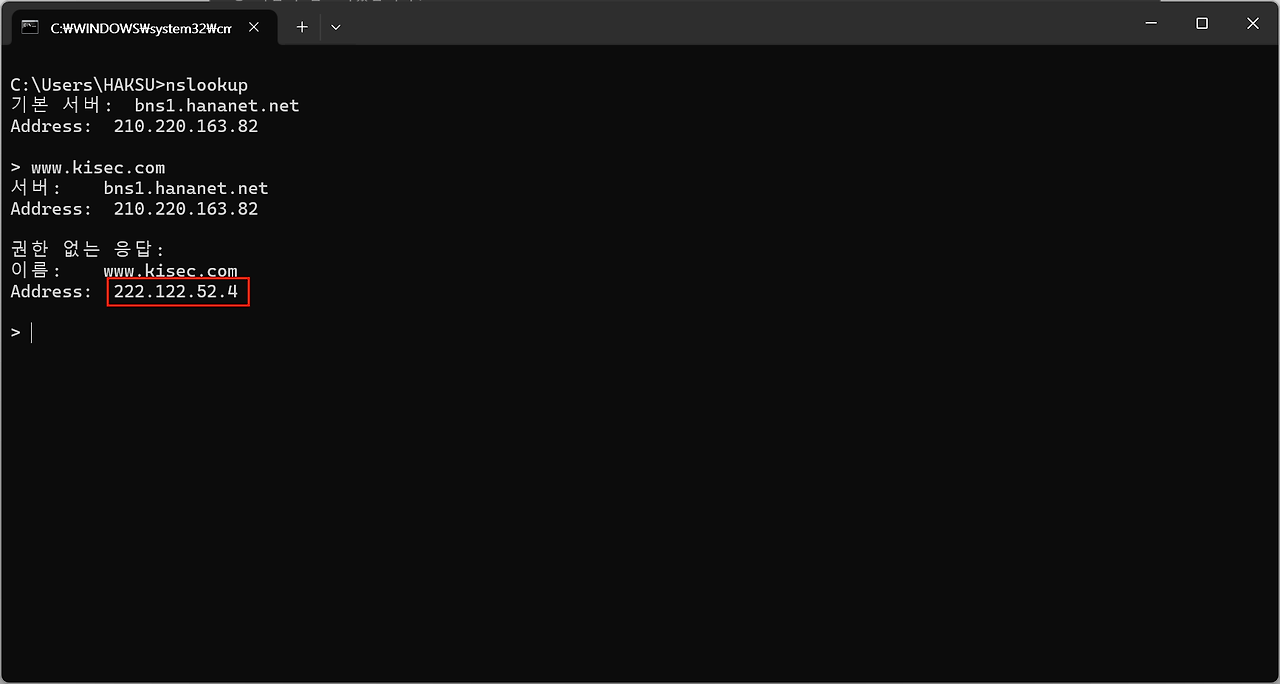 nslookup nslookup 명령으로 dns 질의(역질의도 가능)