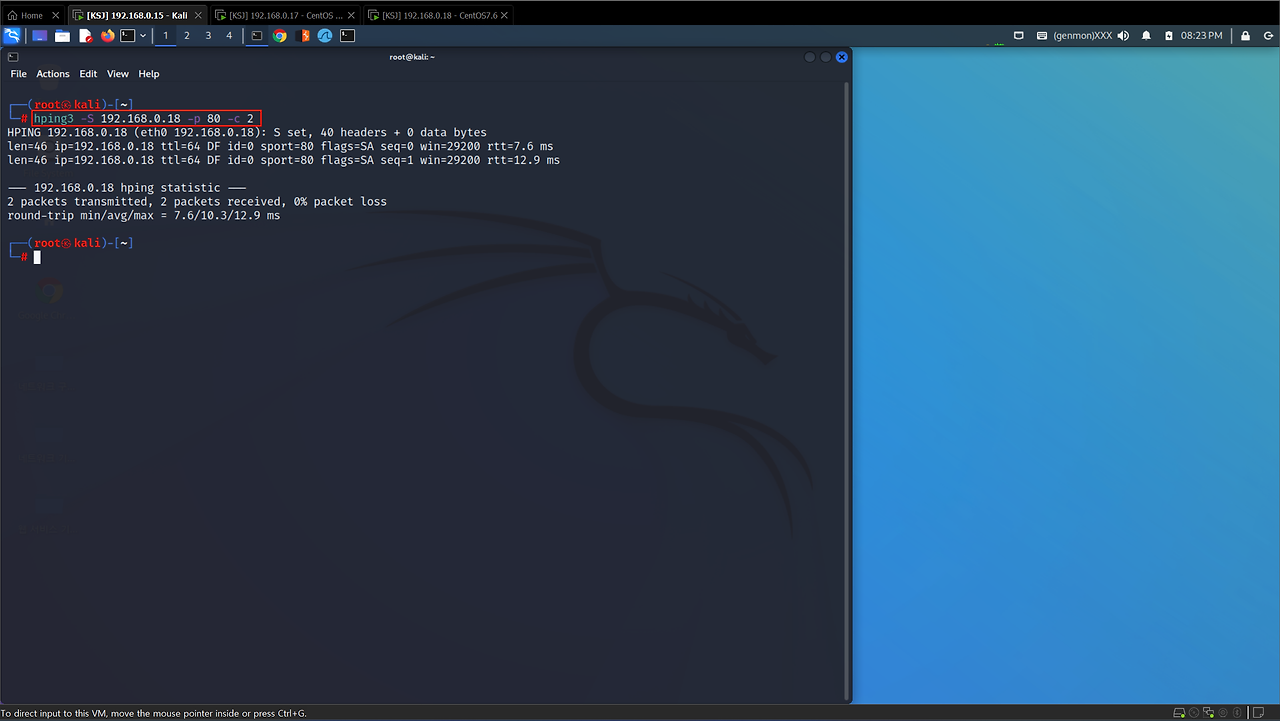 3) hping3 명령으로 기본 네트워크 정보 수집(ping 명령과 유사)