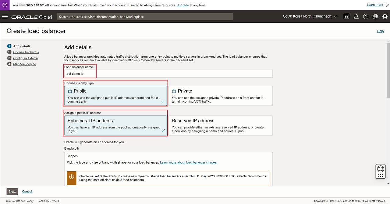 Load balancer name : oci-demo-lb