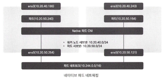 -> Route table 룰에 따라 파드로 라우팅 - 파드-파드 간, 파드-노드 간 통신 가능