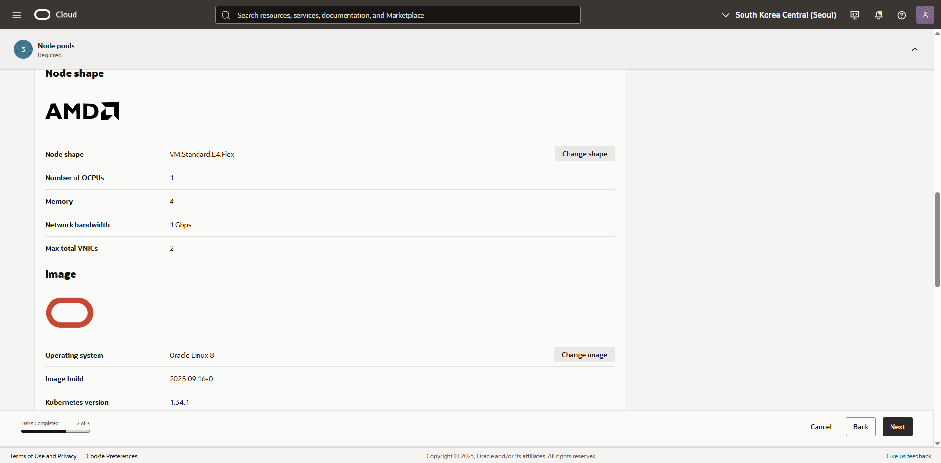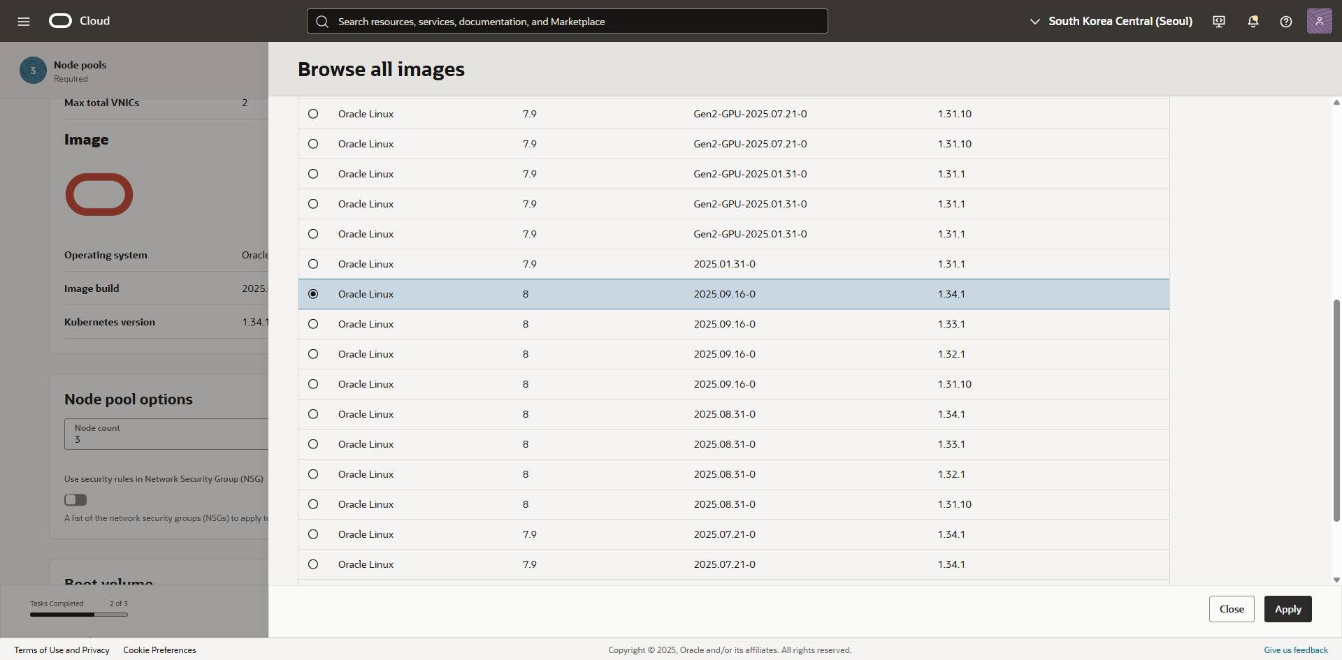 - Oracle Linux OS만 포함하며, Kubernetes Engine에 필요한 소프트웨어를 다운로드, 설치 및 구성함