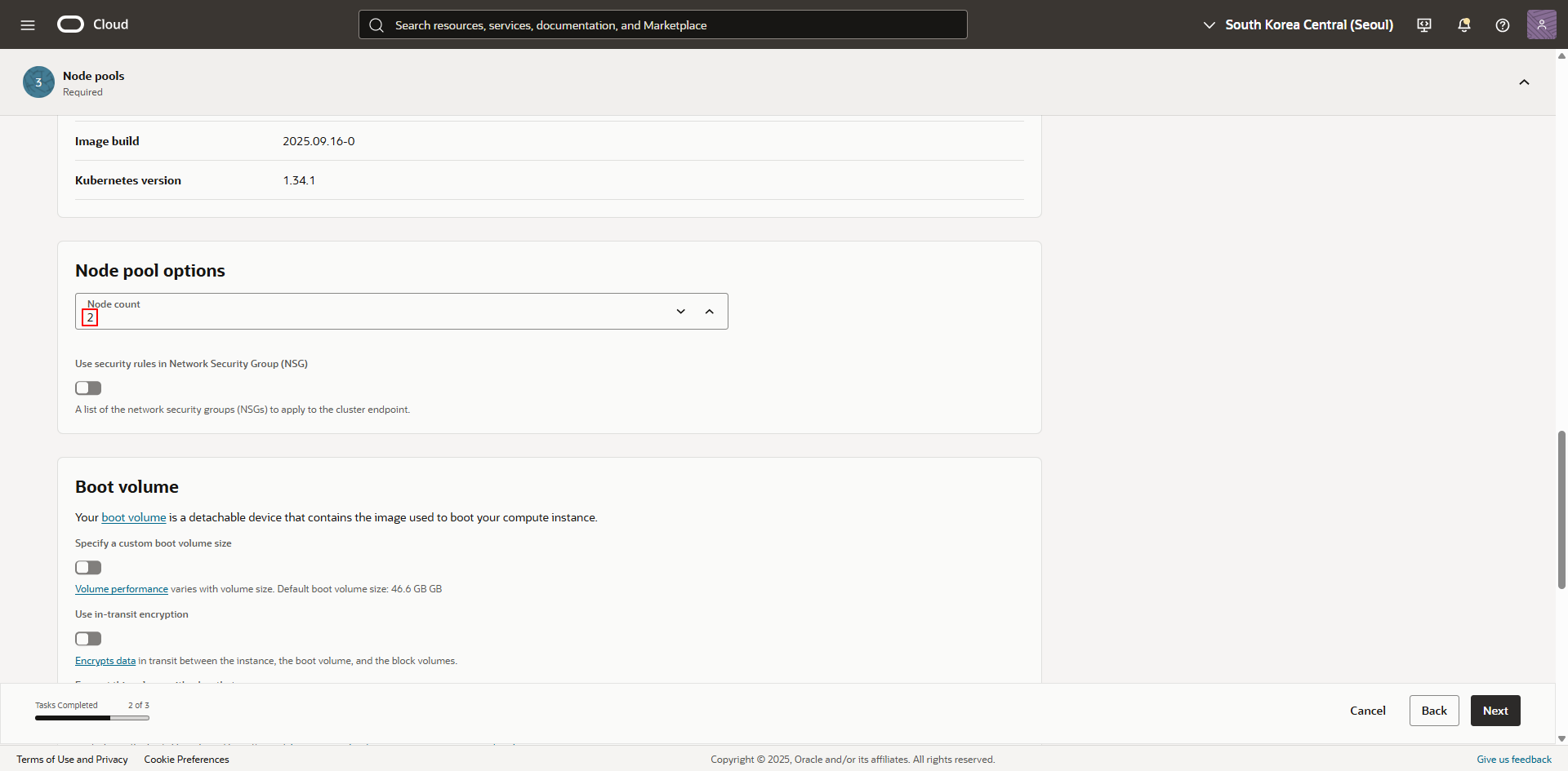 - Number of OCPUs : <WorkerNode에 할당할 OCPU>