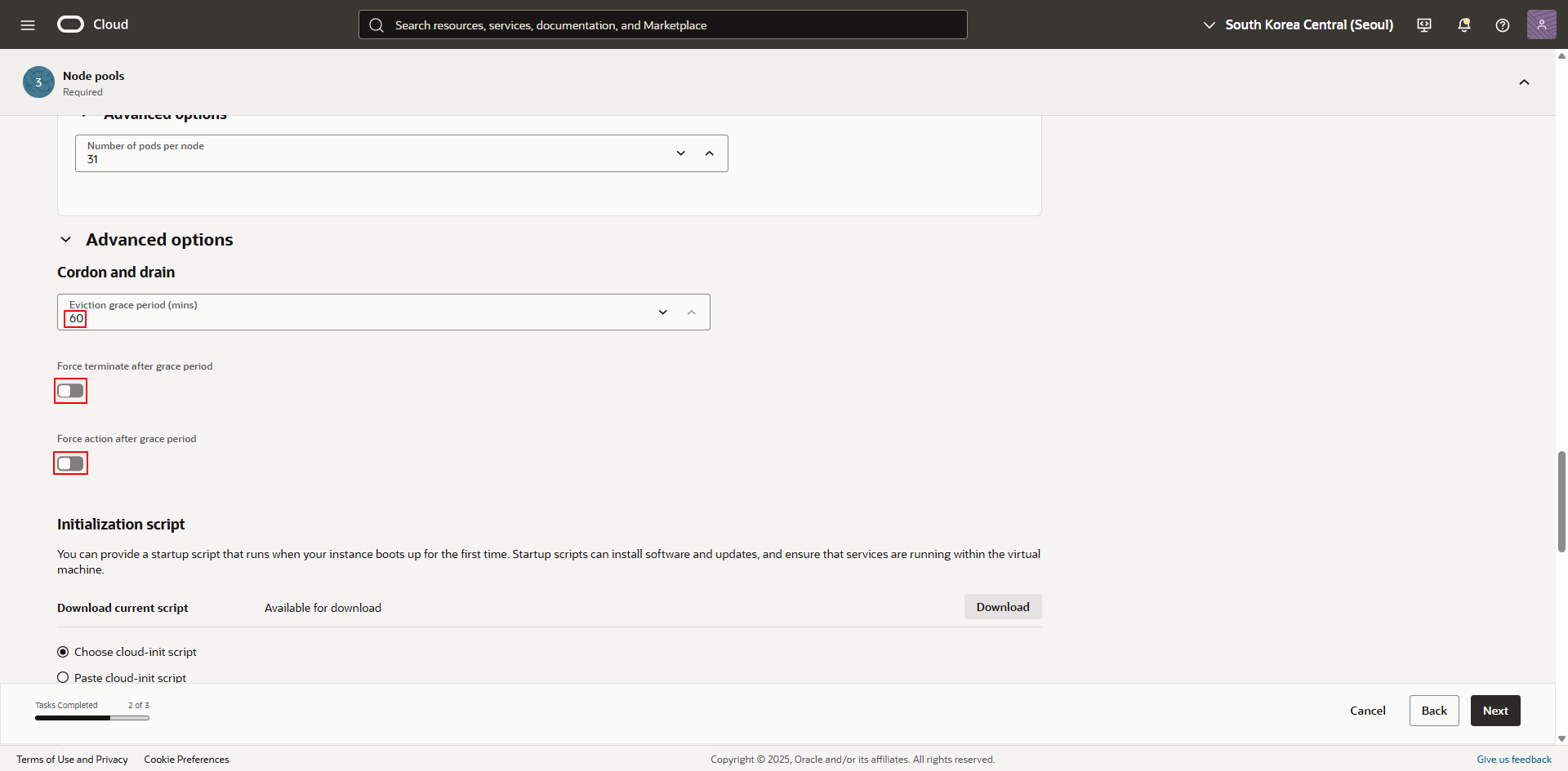 - Eviction grace period(퇴거 유예 기간)가 끝날 때, Worker node의 Cordon and Drain 작업이 성공적으로 완료되지 않은 경우에도 Worker node를 항상 Terminate할 지에 대한 여부