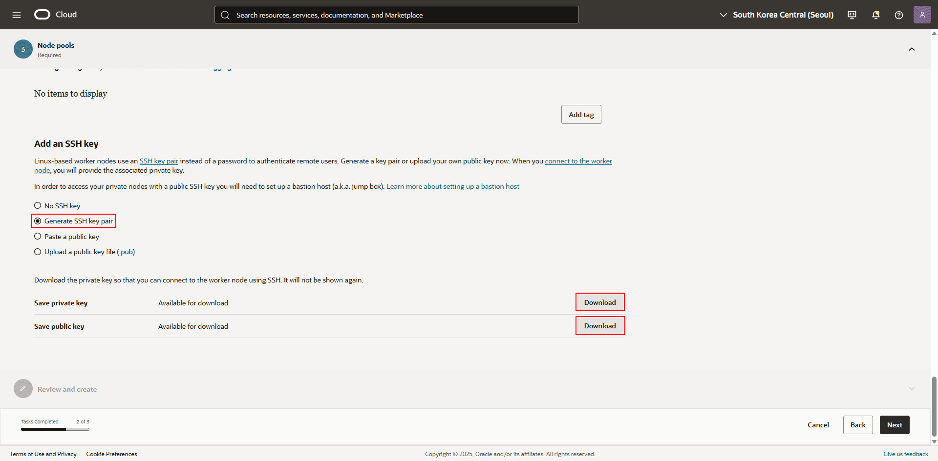 Worker Node에 대한 SSH Key를 가지고 있다면, 기존 키를 업로드하여 이용해도 무방함