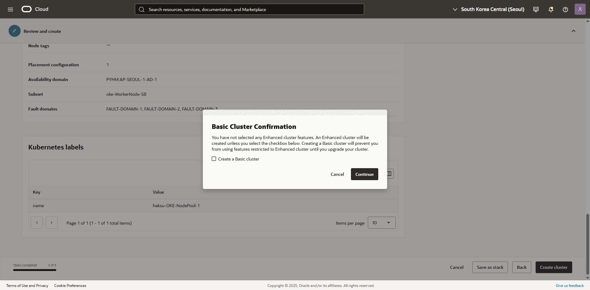 - Enhanced Cluster : Create a Basic cluster 미체크