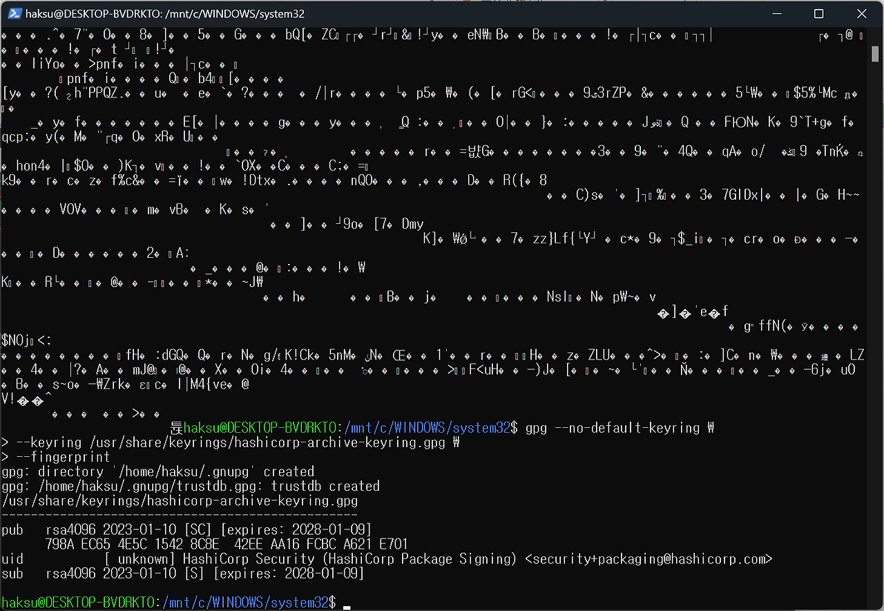 3) 변환된 키를 ‘/usr/share/keyrings/hashicorp-arvchive-keyring.gpg’ 파일에 저장