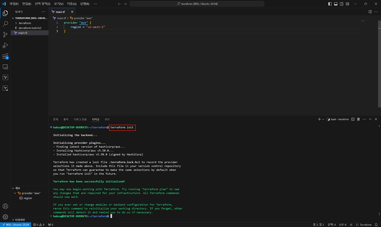 2. AWS API와 상호 작용하기 위한 프로바이더 선언(terraform init)
