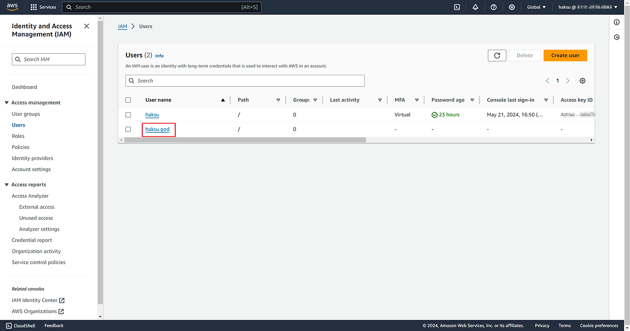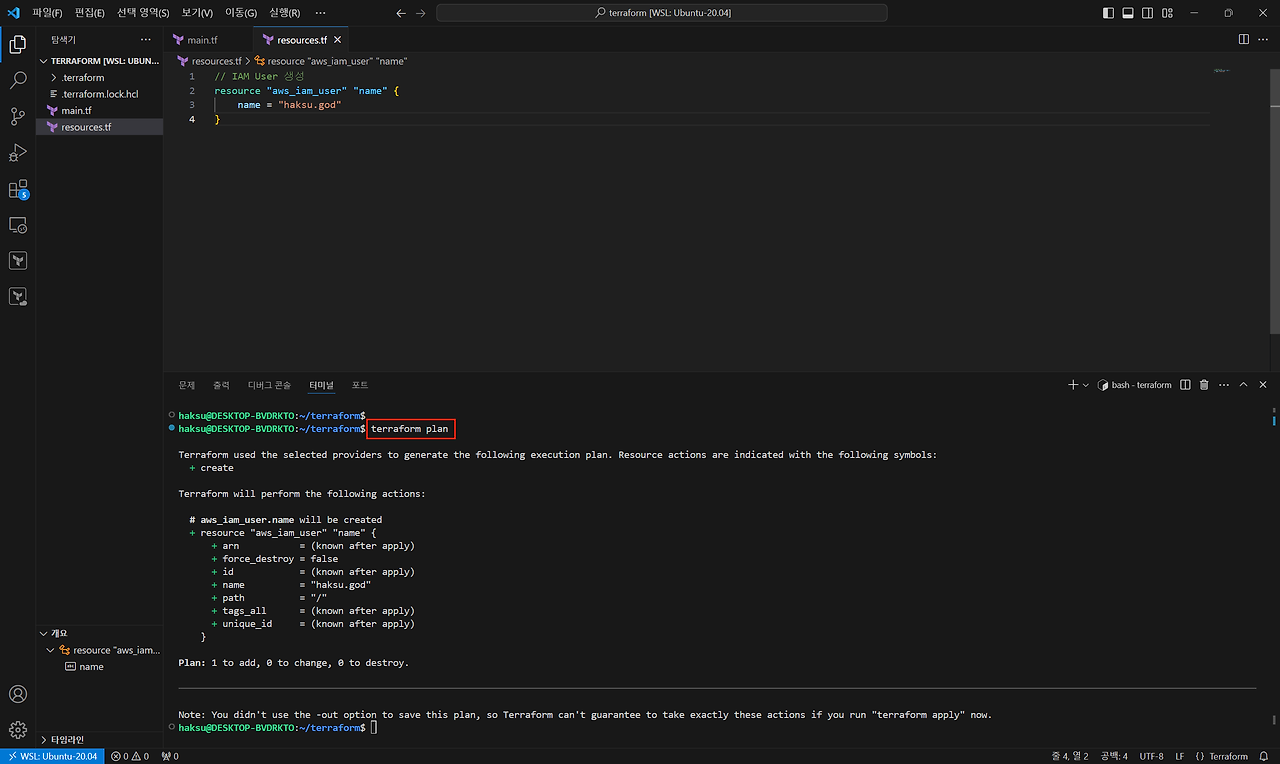 // IAM User 생성 resource "aws_iam_user" "name" { name = "haksu.god" }