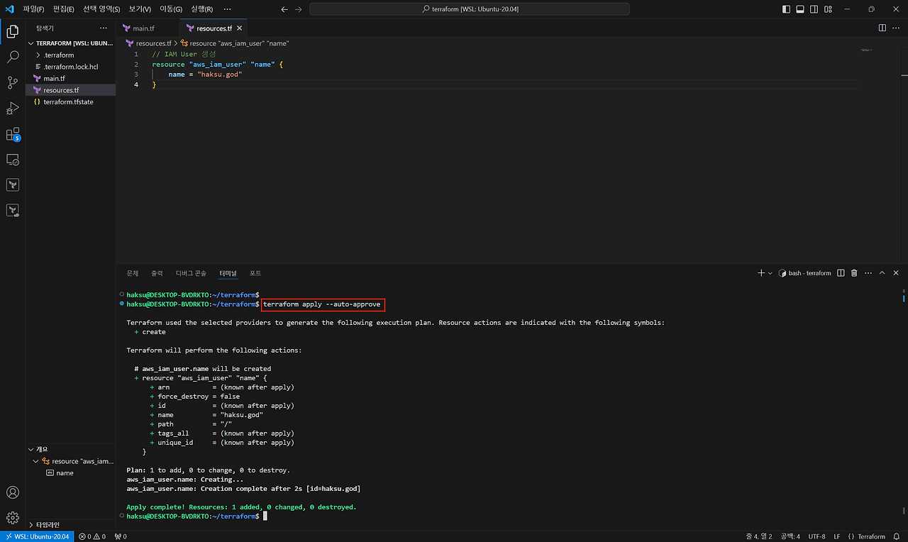 terraform apply --auto-approve - 실제 적용된 것 확인