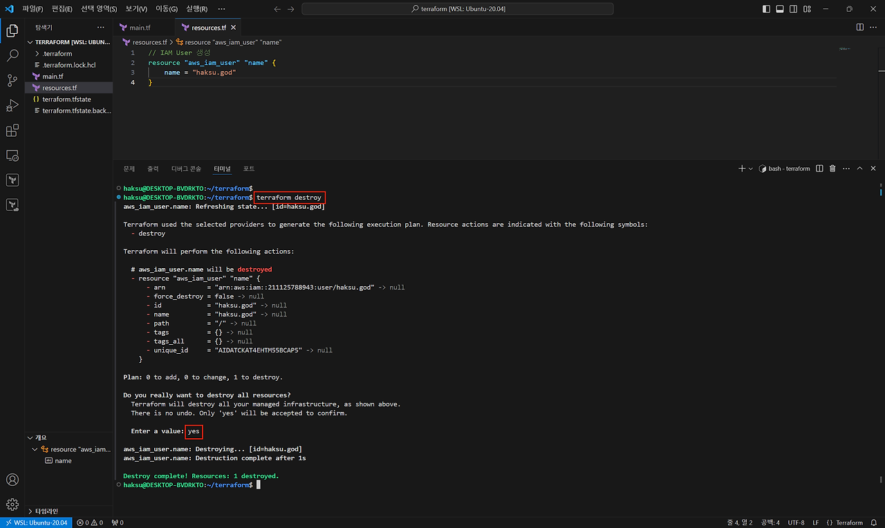 4. IAM User 삭제(terraform destroy)