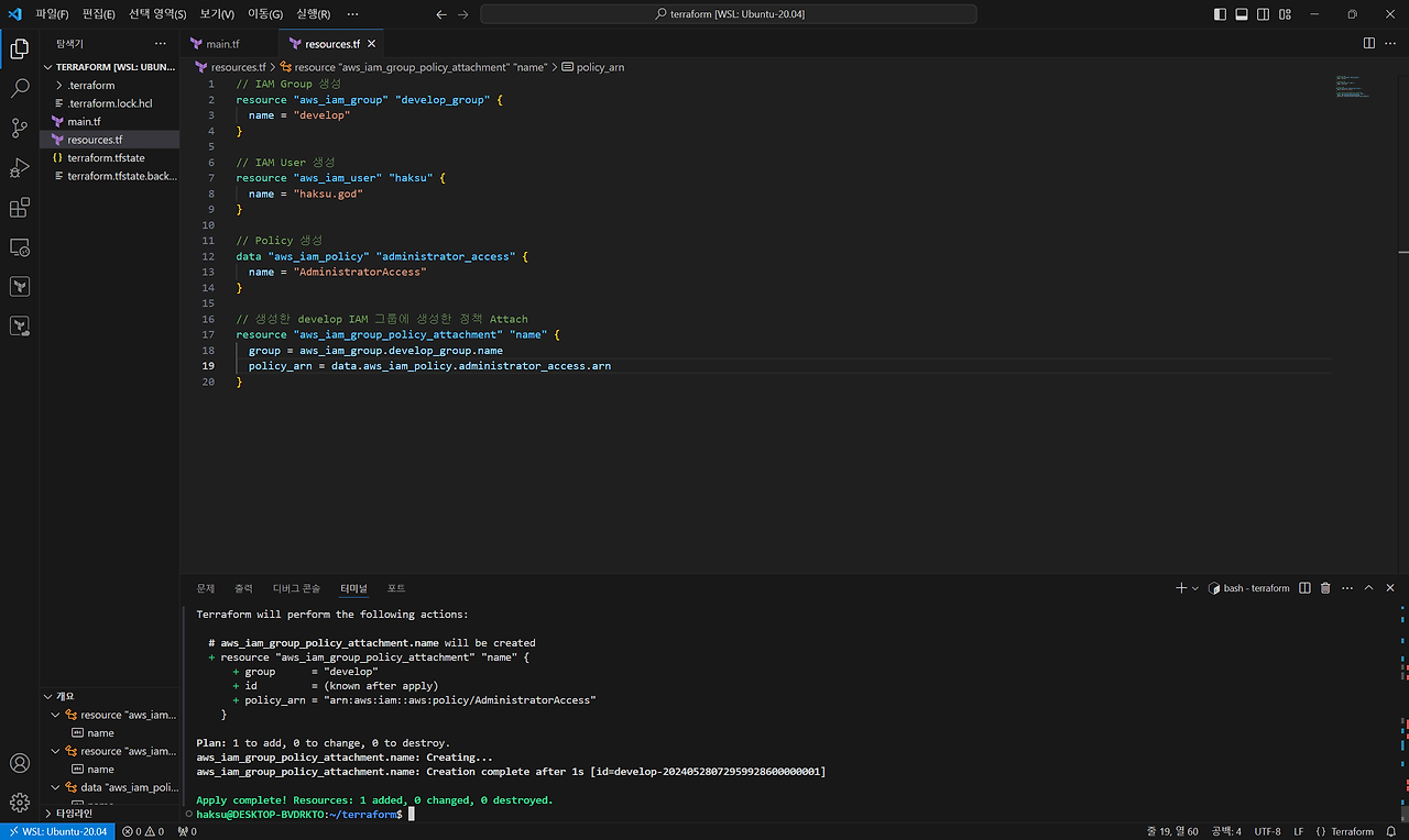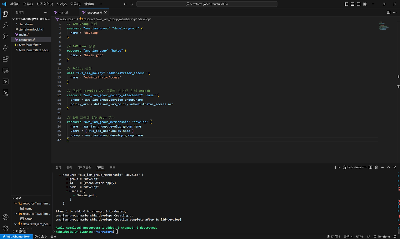 [Terraform] IAM Group 생성 후 정책 적용 및 IAM User 추가