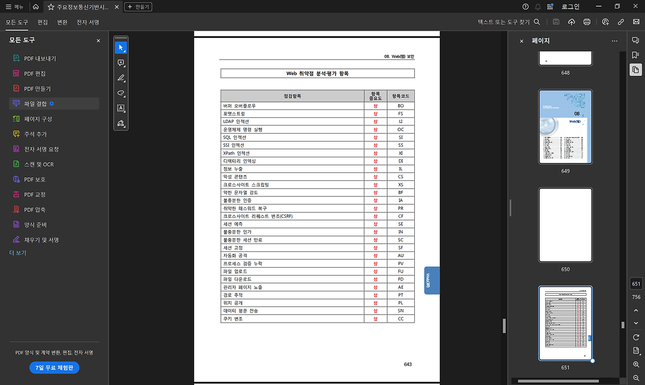 | 버퍼 오버플로우 | 상 | BO | 크로스사이트 리퀘스트 변조(CSRF) | 상 | CF |